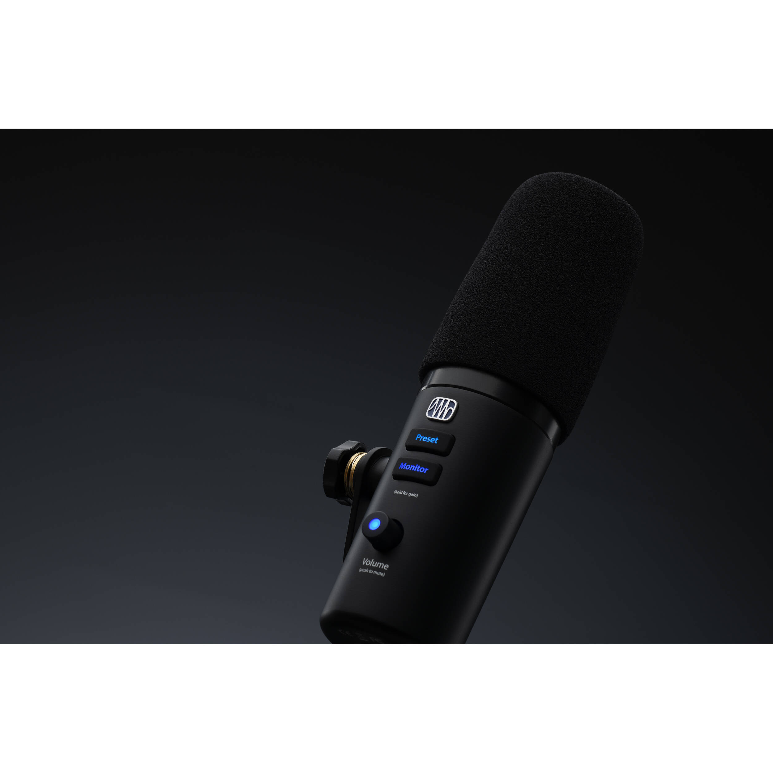 The PreSonus Revelator USB Microphone is a versatile and high-quality audio device designed for professional-grade sound recording. Featuring a large diaphragm, this microphone is perfect for capturing a wide range of vocal nuances and intricate sound details, making it ideal for podcasters, musicians, and content creators. Its cardioid polar pattern ensures excellent sound isolation by capturing audio predominantly from the front while minimizing background noise from the sides and rear.